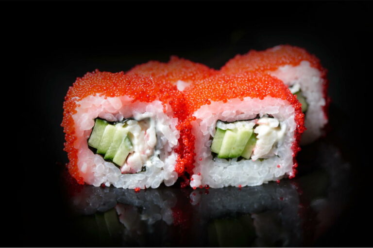 креветки, майонез, мясо краба, нори, огурец, рис, тобико | 270 г